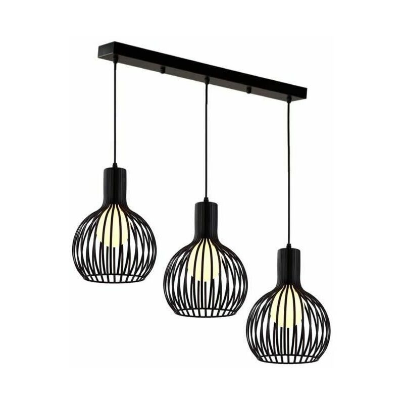 Il design moderno, elegante e vintage dona una nota particolarmente chic ai tuoi interni. La forma della gabbia sembra molto chic. Non solo illuminazione, ma anche decorazione per la tua casa. Parametri tecnici Tipo: Lampadario/Pendente/Lampada da soffitto Stile: Moderno / Vintage / Lampade a sospensione retrò Dimensioni (LxPxA): 20x20x23 cm Lunghezza barra: 50 cm Lunghezza corda: 100 cm (altezza regolabile) Materiale: Metallo Colore: Nero Portalampada: 3*E27 Tensione: 220-240V Potenza: max 60W La lampadina non è inclusa Lampadine esistenti: lampadina a LED, lampada a risparmio energetico, alogena. Struttura semplice, stile retrò, linee eleganti. Realizzato con materiali di ferro di alta qualità, La superficie a basso tenore di carbonio, la protezione dell'#39;