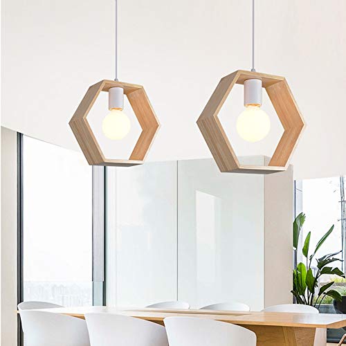 Lampade a Sospensione in legno in Stile Geometrico Moderno, E27 Retro Soffitto Plafoniera Interni Lampadario adatto per camera da letto Sala da pranzo Bar Decorazioni (lampadina non inclusa) (C)