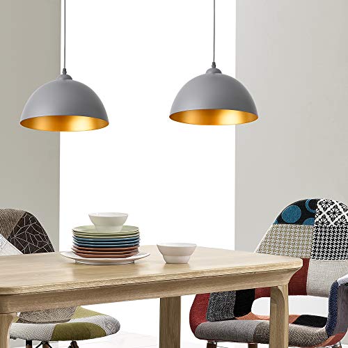 Lux.pro Set da 2 Lampade a Sospensione in Stile Vintage con Lunghezza Regolabile E27 60W 2X Lampadari in Design Industriale Paralume Ø 30 cm - Grgio