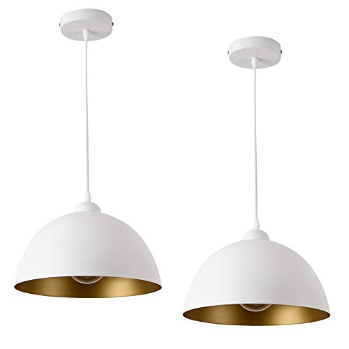 Lux.pro Set da 2 Lampade a Sospensione in Stile Vintage con Lunghezza Regolabile E27 60W 2X Lampadari in Design Industriale Paralume Ø 30 cm - Bianco