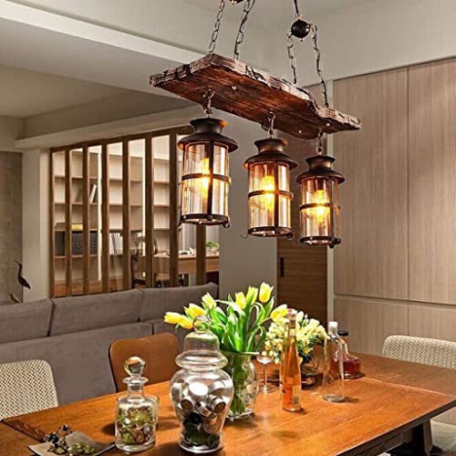 Lampade Sospensione Vintage Sala Pranzo Lampadario Interni Luce Pendente Industriale Retrò Legno E Metallo Paralume Vetro E27 Camera Base Bar Plafoniera Altezza Regolabile Illuminazione,3 heads
