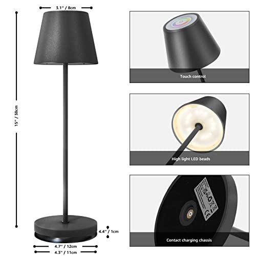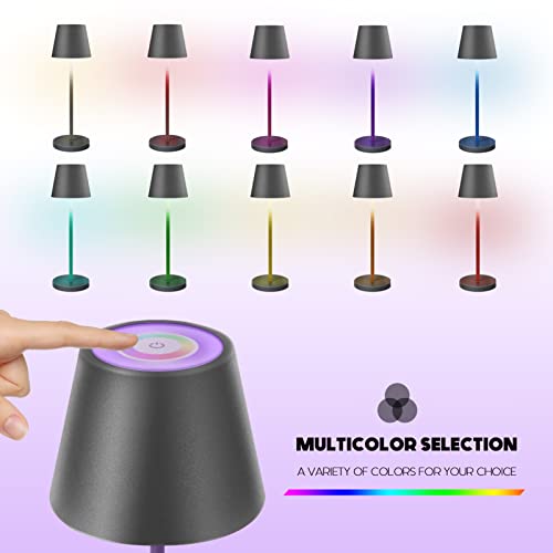 2 lampade da tavolo a LED a batteria, per esterni, senza fili, touch 8 colori, IP54, in metallo, dimmerabili, con stazione di ricarica USB, per esterni, camera da letto, bar, ristorante, tavolo (Nero)