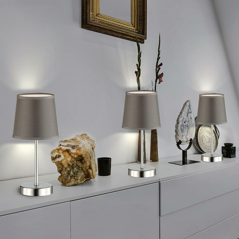 Descrizione Le lampade da tavolo di questa serie sono dotate di paralumi in tessuto, che supportano ulteriormente l'effetto luminoso in colori di tendenza. Questa lampada ha un interruttore e un paralume che puoi scegliere in base ai tuoi desideri. La lampadina non è inclusa nella fornitura. La fornitura comprende tre lampade da tavolo! Particolare lampada • Tipo di lampada: lampada da tavolo • Materiale: metallo, tessuto • Colore: nichel opaco, grigio • Accendere il cavo • Grado di protezione: IP20 • Classe di protezione: 2 • Diametro x altezza in cm: 14 x 32 • Presa: 1x E14 • Lampadina inclusa: No • Potenza della lampada: 1x massimo 42 watt • Alimentazione: 230V, 50Hz