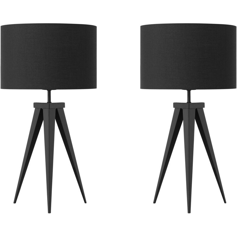 Coppia di lampade da tavolo con base a treppiede. Questo funzionale set di lampade da tavolo è la scelta ideale per il soggiorno, la camera da letto o l'ufficio. La solida base in metallo verniciato a polvere, si abbina alla perfezione al prezioso paralume a tamburo per un vero tocco di classe. Il lungo cavo con interruttore integrato infine, le rende facili da posizionare. Dettagli: Tipo di prodotto: Lampada da tavolo Stile: Moderno Colore principale: Nero Tipo di materiale: Metallo Materiale principale: Ferro Materiale secondario: Cotone sintetico Materiale della base: Metallo Materiale del paralume: Cotone sintetico Composizione del materiale: 100% tetron Potenza elettrica: Max. 40W Codice IP di protezione: IP 20 Lampadine richieste: 2 Voltaggio: 220-240 V (50 Hz) Dimensioni: Lunghezza del cavo: 220 cm Profondità: 28 cm Larghezza: 28 cm Altezza: 55 cm Peso: 1 kg L'offerta include: Non include: Lampadine, 2 x Lampada da tavolo Caratteristiche chiave: Interruttore touch, Luce