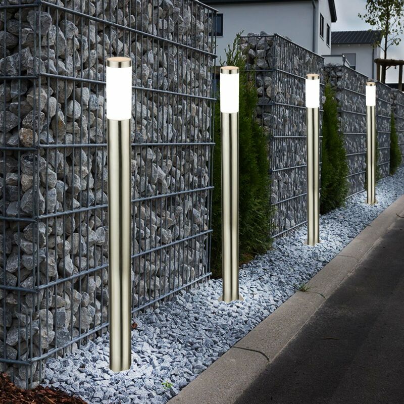 Descrizione Lampada da terra in acciaio inox per il tuo spazio esterno. Con molte di queste luci, ad esempio, il percorso attraverso il giardino può essere perfettamente messo in scena o determinati oggetti in l'area esterna della tua casa può essere magnificamente accentuata. Grazie alla classe di protezione IP44, questo apparecchio è protetto dagli spruzzi d'acqua ed è quindi predestinato per l'uso esterno. Rispetto ai normali apparecchi di illuminazione, i faretti a LED consumano una quantità minima di elettricità e vengono persino consumati con lampade a risparmio energetico. È inclusa una lampada LED di alta qualità a risparmio energetico! La fornitura include 4 lampade da terra ! Dettagli lampada • tipo di lampada: lampada da esterno • materiale: acciaio inossidabile hl• paralume: plastica, opale• classe di protezione: IP44• diametro x altezza in cm: 7,6 x 110• diametro base lampada in cm: 12,7 • lampadine: 1x E27 LED • lampadine incluse: sì • lampadine di alimentazione: 1x 9