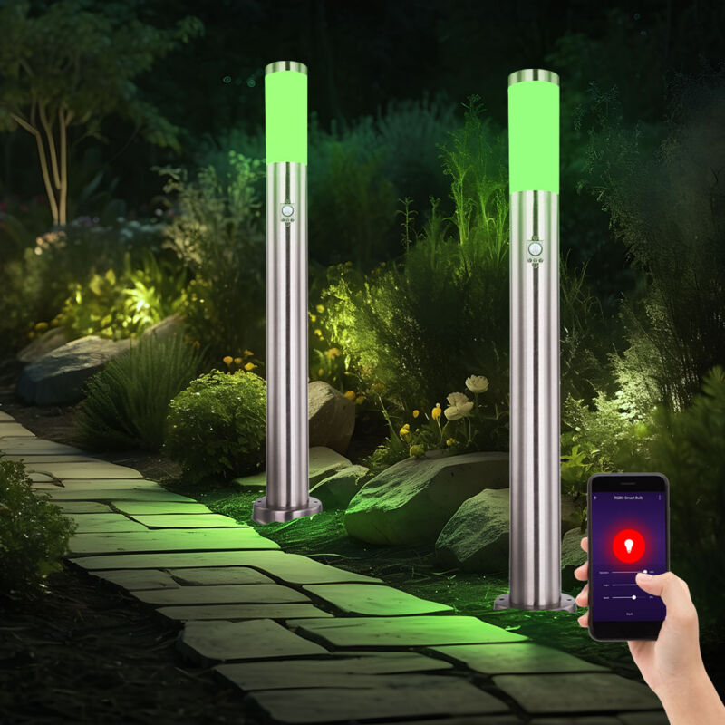 Descrizione L'elegante lampione da esterno si caratterizza per il suo design elegante, il sensore di movimento e l'ottima fattura. Grazie alla sua classe di protezione IP44, la lampada a stelo è ideale per l'uso esterno. Questo modello è realizzato in acciaio inossidabile e plastica opalina e ha una dimensione totale di 80 cm. Puoi completare il quadro con altre lampade a stelo e da parete lampade della stessa serie di prodotti. Grazie all'illuminante incluso, puoi controllare comodamente la lampada dal divano utilizzando l'app o il servizio di controllo vocale. Puoi utilizzare l'app per impostare il timer con diversi giorni della settimana e orari, nonché diversi programmi di illuminazione. Una lampadina LED RGB è inclusa nella fornitura. Due luci sono inclusi nella fornitura! dettagli dell'apparecchio • tipo di lampada: lampione• materiale: acciaio inossidabile, plastica• colore: argento, opale• classe di protezione: IP44• Rilevatore di movimento • Portata del sensore: max 8m