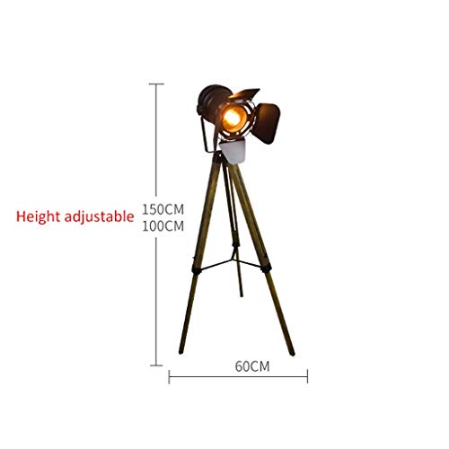 Lampade da terra Lampada da terra vintage a treppiede in stile industriale, retro riflettore for teatro nautico, lampade in legno industriali, lampade da terra verticali for cinema, oggetti di scena H
