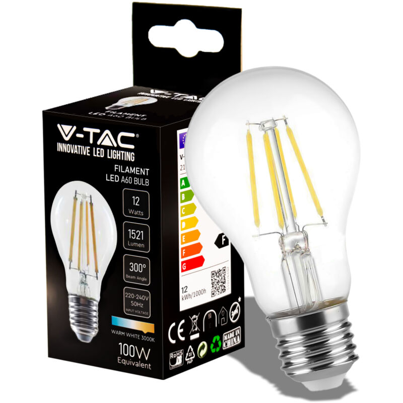 V-TAC Lampadine Lampadina LED E27 12W 125LM/W A70 Filamento 6500K