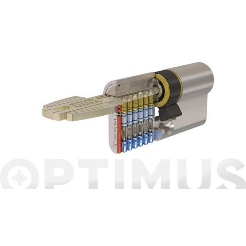 Seguridad lampadina T60 655 35/35 N.-Dimensioni 70mm (35/35mm).-Finitura nichel.-Profilo europeo.-1 fila 6 pitoni a doppio diametro.-Cam R15mm.-Resistenza alla corrosione Grado B.-Sistema antiabbagliamento, antitrapano e anti-aggancio.-Con 5 chiavi a punti in ottone nichelato.-Certificato EN 1303 standard.