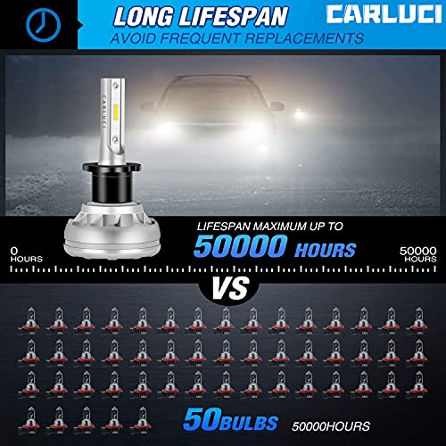 Lampadina H3 LED 80W 5000LM Per Fari Auto,CARLUCI H3 LED Lampadine Fendinebbia per Moto 12V,Impermeabile IP68 6500K Bianco Kit di Sostituzione Alogena e Xenon Luci,per Fari Abbaglianti e Anabbaglianti