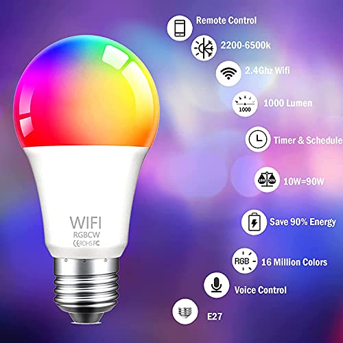 Lampadina Alexa WiFi E27 Lampadine LED Intelligence,2800k-6000k, RGB 9W Wifi 2.4Ghz Regolabile Multicolore Light Telecomando Controllo di gruppo Compatibile con Alexa Google Home