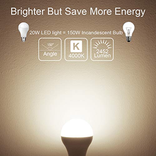 Lampadina LED E27, Awenia Lighting 20W (Equivalente a 150W), Luce Bianca Naturale 4000K, 2452lm, Confezione da 2