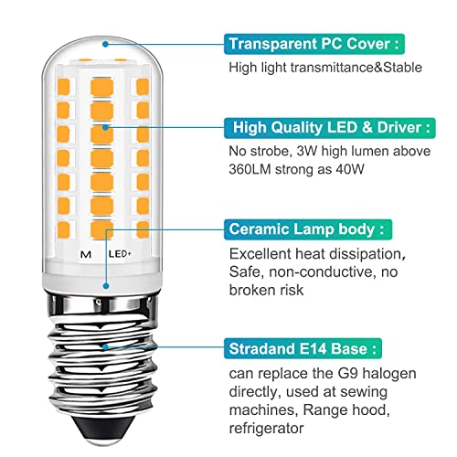 FACILE DA INSTALLARE E AMPIA APPLICAZIONE: Base E14 standard - La lampadina E14 Samll Edison Screw (SES) è ampiamente utilizzata nei frigoriferi (lampadina per frigorifero a LED E14), cappe aspiranti, macchine da cucire e altri piccoli elettrodomestici E14