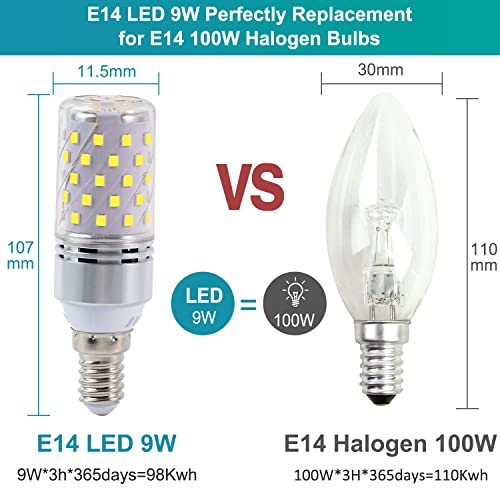 Risparmio energetico: la lampadina a LED 9W E14 è equivalente a 80W, lampadina alogena da 80W, 100W E14, godendo l'alto lume, risparmiando energia e elettricità del 90% rispetto alle lampadine alogene, anche oltre 25.000 ore di durata di vita evitando il problema della frequente sostituzione della lampadina, bassi costi di manutenzione