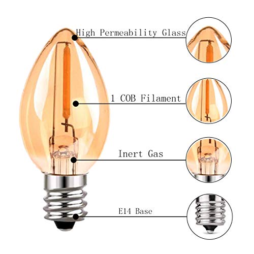 Lampadina a candelabro a filamento C7 LED, lampadine vintage Edison E14(vetro ambra), lampadine da 2200 K bianche ultra calde da 0,5W(5W equivalenti), 50 lumen, non dimmerabili, confezione da 25 pezzi