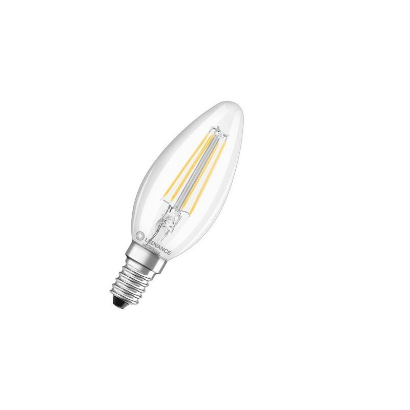 Lampada LED PERFORMANCE CLASS CLASSIC B FIL 40 NO-DIM 4W/840 E14 470lm 15000 ore 4 anni di garanzia. Lampade LED, forma a candela classica. Caratteristiche del prodotto: Rivestimento della corona della lampadina: oro o argento. Lampada in vetro. Buona qualità della luce, indice di resa cromatica: ≥ 80, cromaticità costante. Benefici del prodotto: Lunga durata fino a 15.000 ore. Basso consumo energetico. Sostituzione facile grazie al design compatto. Luce istantanea al 100%, senza tempo di riscaldamento. Lampade con innovativa tecnologia LED a filamento. Aree di applicazione: Perfetto per installazioni decorative. Illuminazione per specchi. Applicazioni domestiche. Illuminazione generale. Utilizzo solo all'aperto in apparecchi esterni appropriati.