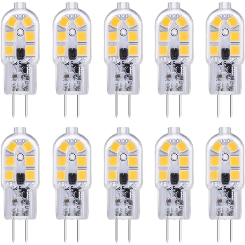 G4 LED 12V - : non installare questa lampadina LED G4 12V direttamente nel sistema di illuminazione standard CA 100 V-220 V, poiché ciò causerebbe un cortocircuito e danneggerebbe la lampadina. Se vuoi usarlo a 220 V CA, assicurati di utilizzare un trasformatore! La lampadina non è dimmerabile. Non compatibile con dimmer. Adatto per l'illuminazione interna di roulotte/cabina. 【Suggerimento per l'uso del trasformatore】: assicurati che il tuo trasformatore (da 220 V a 12 V) sia compatibile con le lampadine a LED. In caso di incompatibilità il LED potrebbe lampeggiare o danneggiarsi. Se viene utilizzato un trasformatore alogeno, la potenza di tutte le lampadine deve raggiungere la potenza minima del trasformatore. Ottimo da usare come lampadario sopra il tavolo da pranzo. Risparmio energetico: lampadina LED G4 12V 2W con LED SMD 12*2835, bianco freddo 6000K, 200LM, luce a 360 gradi. G4 LED 2W sostituisce la lampadina alogena da 10-20W, che può ridurre il consumo energetico di oltre l'85%.