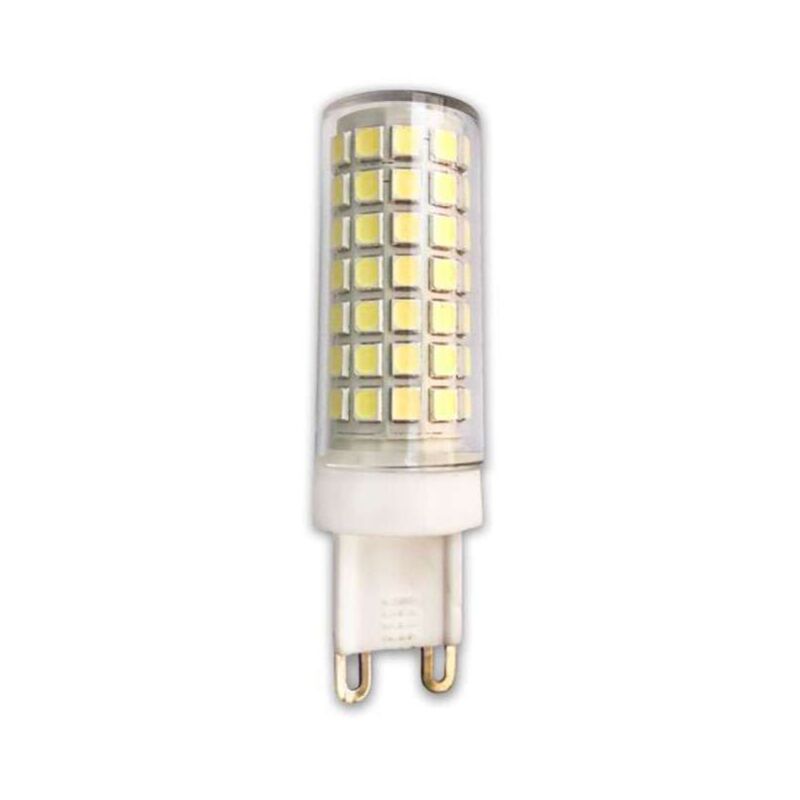 Lampadina LED tipo G9 220V 6W luce equivalente 45W. Illuminazione a 320°. Luce bianca calda 2800K. Dimmable: funziona su variatori. Illuminazione immediata. Dimensioni: Φ18x64mm. Garanzia 2 anni. 2800K 6W 45W 550 320° 30000 h Lampadina dimmerabile G9 6W Questa lampadina LED G9 6W è stata progettata per fornire la luminosità massima (550 lumen) che è un equivalente di 45W pur essendo compatibile con variatori di intensità. La sua congestione rimane abbastanza bassa Φ18x64mm. Illuminazione immediata Grazie alla tecnologia LED, questa lampadina illumina istantaneamente. L'angolo di diffusione della luce è di 320°. Consumo di watt: 6 W Indice di protezione IP: IP20 Modulo: Epi Attacco: G9 Flusso luminoso (lumen): 550lm Angolo di illuminazione: 320° Durata di vita: 25000 ore Watt equivalenti: 45 W Tipo di LED: SMD Diffusore: Trasparente IRC CRI: ≥80 Classe energetica: A+ Certificazione: CE e ROHS Colore della luce: Bianco caldo Diametro: 18 mm Dimmer per la regolazione