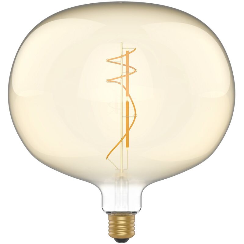 La luce è la protagonista assoluta di H05 Ellipse 220, la lampadina con il filamento ad alto flusso luminoso firmata Bebulbs, il marchio che si spinge oltre i confini del design per lampadine LED di qualità e charme. La sue particolarità? Il doppio filamento, che unisce la bellezza dei filamenti curvi alla potenza di luce quelli dritti. Il risultato è una singolare poesia dall'armoniosa forma ellittica, dimmerabile, ad ampia emissione di luce e a lunga durata (15.000 ore e 20.000 cicli on/off) Il vetro dorato la rende un oggetto decorativo, ma con una luce decisamente importante (806Lm), perfetto tanto in ambito domestico quanto in quello commerciale. Tipo di lampadina: LED Forma: Ellisse Attacco: E27 Diametro: 220 mm Lunghezza: 235 mm Volt: 220/240V Watt: 8,5W Classe energetica: F Colore luce: 2200 K Lumen resi: 806 Lm Dimmerabile: Sì Dimmerabile con led dimmer IGBT. Per la scelta del varialuce: oltre alla potenza massima del dimmer deve essere considerata anche quella minima, poiché