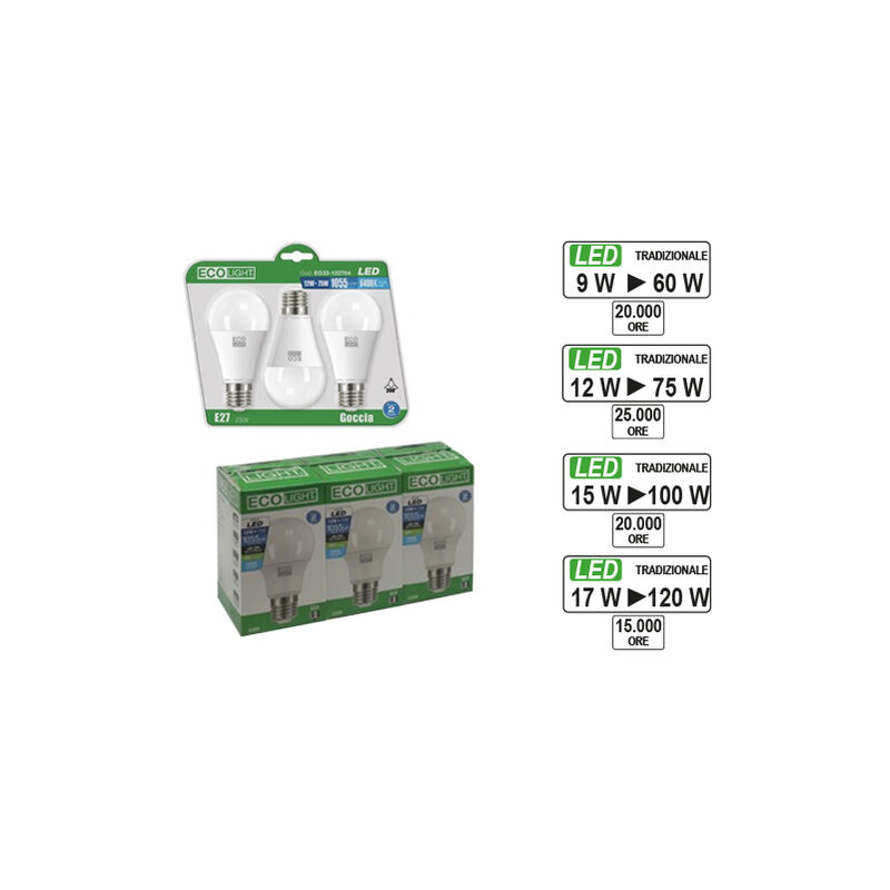 Tecnologia led in classe a+. consumi ridotti al 90%. attacco e27. confezione 3 pezzi. 17watt 3000k luce calda 1900 lumen