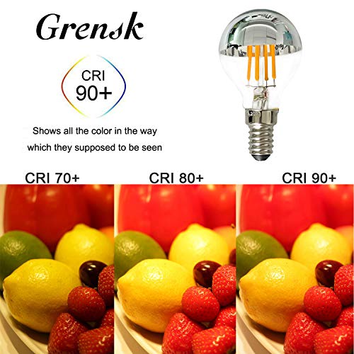 Lampadina LED Edison G45 / G14 4W, lampadina a filamento LED con punta argentata, equivalente a 40 Watt, base candelabro E14, bianco caldo 2700K, dimmerabile -2Pack