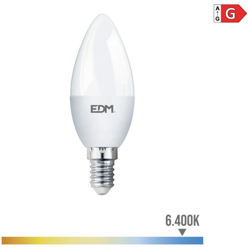 Lampadina LED E14 5W equivalente a 35W. Ombra leggera: Bianco di Giorno 6400K - angolo di illuminazione a 200°. 400 lm di flusso luminoso con accensione immediata. Dimensioni: altezza: 10.3cm ф3,6cm - forma: Fiamma. Lunga vita: 25000h, classe energetica A+. garanzia di 2 anni. Connessione AC220-240V. 6400K 5W 400 35W 200° 25000h Consumo di watt: 5 W Peso: 0,0260 kg Indice di protezione IP: IP20 Modulo: Fiamma Attacco: E14 Flusso luminoso (lumen): 400lm Durata di vita: 25000 ore Watt equivalenti: 35 W Classe energetica: A+ Température de couleur (K): 6400K Altezza: 10,3 centimetri Certificazione: QUESTO Colore della luce: Blanc froid Diametro: 3,6 cm Dimmer per la regolazione dell'intensità: No Garanzia: 2 anni Nuova categoria energetica: G Disponibilità: In magazzino Numero di registrazione EPREL: 848540 eprel: 848540