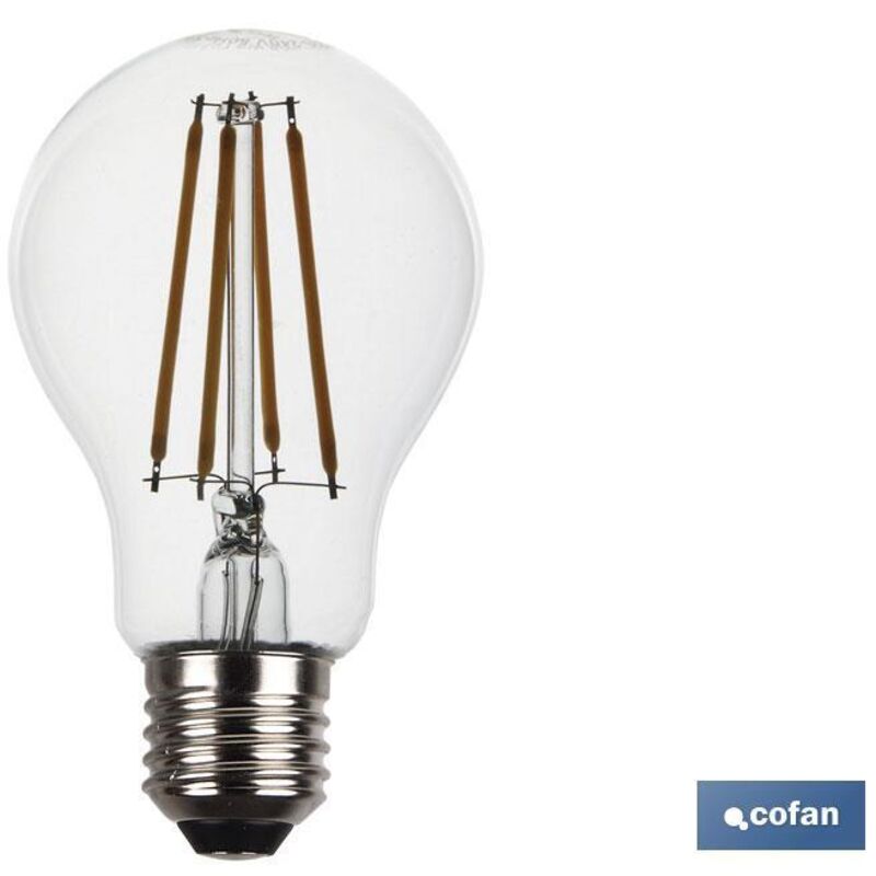 Lampadina Led classica con filamento, attacco E27, 7W, 806 Lm, 2700K Caratteristiche tecniche: w: 7 K: 2700 Lumen: 806 Filettatura: E27