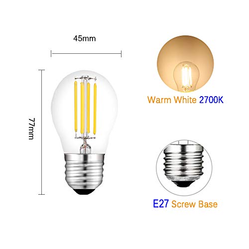 Lampadina LED Filamento E27, 4W equivalente a 40 W, Lampada LED Mini Globe G45, Bianca Calda 2700K/ 400 Lumen/ AC220-240V, Non Dimmerabile, 12 Pezzi