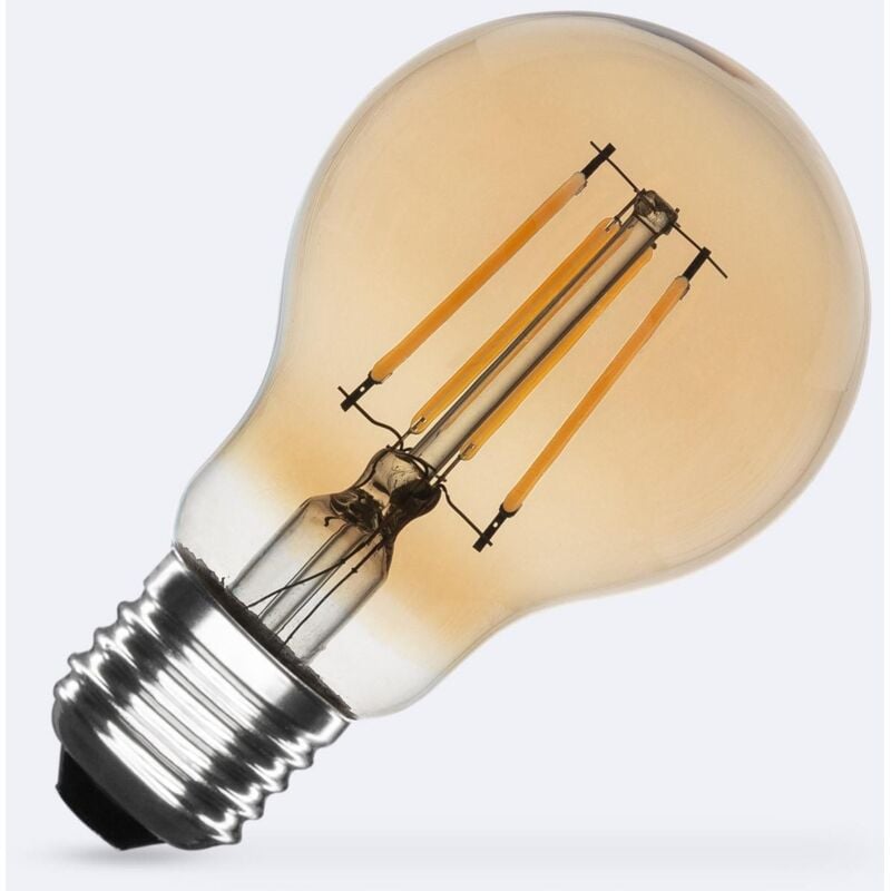 La Lampadina Filamento LED E27 6W 720 lm A60 Oro è un vero gioiello di illuminazione. I filamenti che compongono la sua sorgente luminosa offrono un'impressionante luminosità di 720 lumen, rendendola la scelta perfetta per sostituire le lampadine a incandescenza da 40W . La sua luce è distribuita uniformemente con un angolo di apertura di 360°, fornendo un'illuminazione generale di alta qualità. Questa lampadina non è solo efficiente dal punto di vista energetico, ma offre anche una lunga durata grazie alla tecnologia LED avanzata, il che significa meno manutenzione e maggiori risparmi a lungo termine. L'elegante finitura dorata aggiunge un tocco di lusso e raffinatezza, rendendo questa lampadina la scelta perfetta per chi cerca un'illuminazione efficiente senza compromettere lo stile. La Lampadina Filamento LED E27 6W 720 lm A60 Oro illumina i tuoi spazi con eleganza e qualità luminosa. Con la sua finitura dorata, aggiunge un tocco di lusso in più alla tua illuminazione. SCHEDA