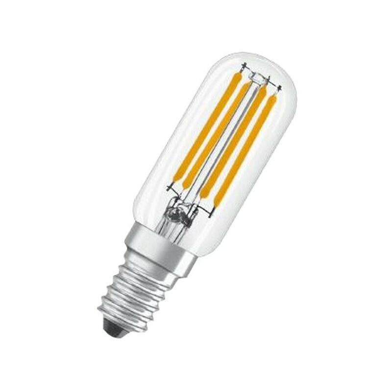 Lampadina a LED per frigoriferi o macchine da cucire Osram Ledvance PARATHOM SPECIAL T26: Potenza 4W Luce calda 2700K Alimentazione 230V Modello a filamento LED Attacco E14 Classe energetica E Caratteristiche: Equivalente ad una lampadina tradizionale di 40W 470 lumen nominali Cri