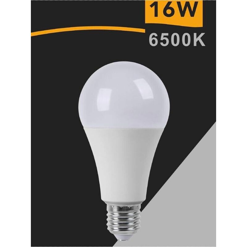 Lampadina led dalla forma a pera con attacco e27 luce bianca 6500k. Basso consumo e risparmio di energia 16 watt equivalenti 160 watt. Caratteristiche tecniche: Potenza: 16 watt Luce bianca: 6500k Attacco: E27 Lumen:1600 Lm Risparmio energetico: 90% Angolo fascio luminoso: 220 Equivalente alogena: 160 watt Durata: 20000H Tensione di alimentazione: 175-265v 50-60 Hz Dimensione: 136X70 mm Riceverete: N 1 Lampadina 16w