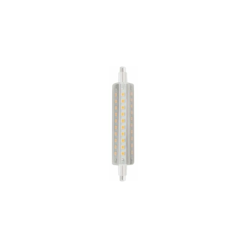 Lampadina LED lineare MATEL 118mm 12W. Classificazione F, risparmio fino al 90% di energia. Indicata per variatore di luce. Design con diametro di 22 mm. Accensione elettronica istantanea e prestazioni elevate. Angolo di apertura della luce di 360°. Corpo in PC bianco con interno in alluminio e copertura trasparente. li> Lampadina con temperatura di colore di 4000K (neutro). Durata media fino a 30.000 ore. Installazione diretta, no Nessun trasformatore aggiuntivo richiesto. Ideale per zone studio, uffici, locali commerciali, ecc.