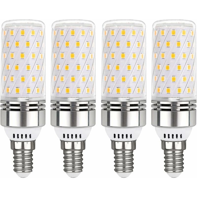 E14 1450LM - : lampadina LED mais 3000K E14 bianco caldo con LED SMD 84 * 2835, 1450LM con angolo del fascio di 360 gradi. Distribuzione uniforme della luce, senza aree scure. La luminosità di 1450LM è adatta per la plafoniera della camera da letto. 【Risparmio energetico】: lampadina LED a mais caldo E14 12W, equivalente alogena E14 100 watt. Ridurre il consumo di energia di oltre l'85%. Bassi costi di manutenzione. Ideale per lampadario sopra il tavolo della cucina. 【Qualità durevole】: base E14, dimensioni ridotte (Ø32*108 mm), facile da installare. Illuminazione istantanea. 30.000 ore di durata. Il materiale in alluminio dissipa rapidamente il calore. È una buona scelta per i fan che amano le lampade con lampadario! 【Sicurezza ed ecologia】: questa lampada per mais E14 non è dimmerabile e non è compatibile con i dimmer. Nessun piombo o mercurio. Nessun rumore o sfarfallio. La luce non lampeggiante e l'abbagliamento zero impediscono affaticamento degli occhi. 【Applicazioni】: la