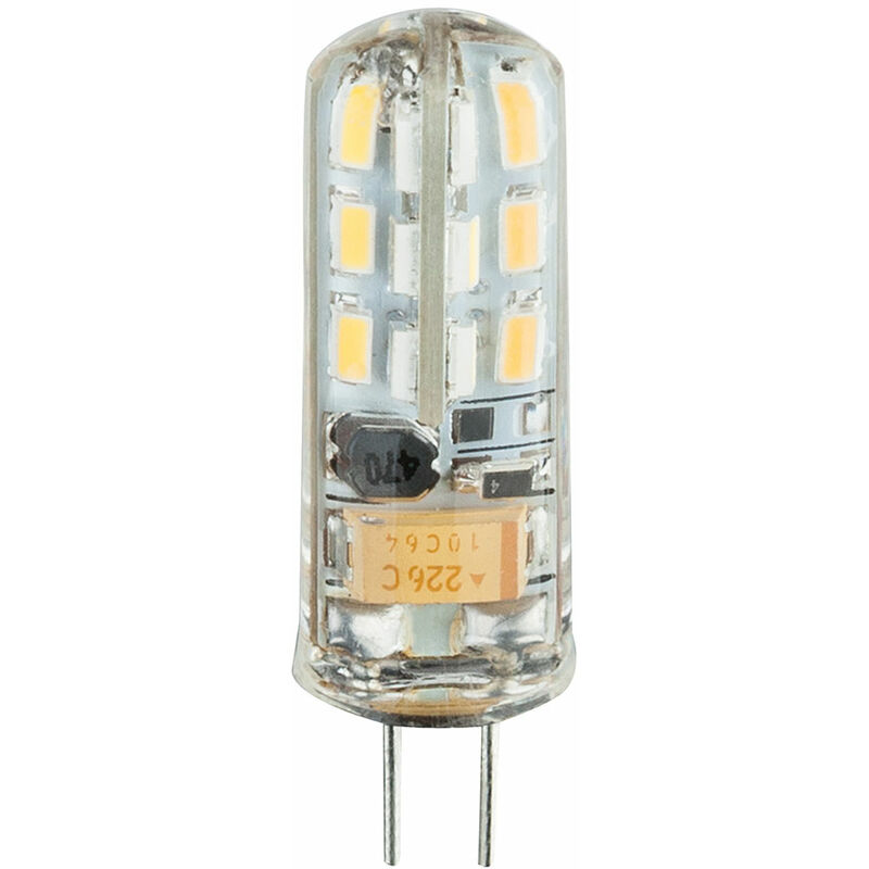 Descrizione Le prestazioni di questa lampada LED G4 da 1,5 watt possono essere paragonate a quelle di una lampadina da 14 watt. È realizzato in plastica trasparente e fornisce 100 lumen di luce con un colore della luce bianco caldo 3000K. Questa lampadina LED ha una durata di 15.000 ore e non è dimmerabile. dettagli • Tipo di sorgente luminosa: LED • Attacco: G4 • Grado di protezione: IP20 • Materiale: plastica • Colore: trasparente • Diametro x altezza in cm: 1,2 x 3,7 • Flusso luminoso: 130 lm (lumen) • Consumo energetico: 1 kWh/1000h • Temperatura colore: 3000 K (Kelvin) • Colore della luce: bianco caldo • Consumo energetico nominale: 1 W (watt) • Vita nominale: 15.000 h (ore) • Cicli di commutazione: 10.000x • Voltaggio operativo: 230 V (volt) • Frequenza di rete: 50 Hz (Hertz) • Contenuto di mercurio: 0 mg (milligrammi) • Dimmerabile: no