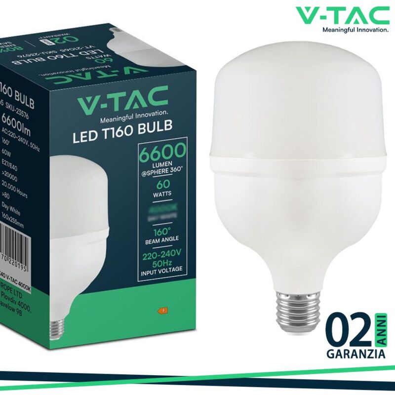 LED Lampadina 60W Plastica T160 6500K SKU: 23577: VT: VT-21065 Specifiche tecniche: Informazione generale =:Attacco=E27:Tipo Lampadina=T160:Tipo LED=SMD:Vitamedia=20,000 ore: Dati elettrici =:Potenza=60W:Tensione=AC:220-240V:Frequenza=50Hz: Dati tecnici luce =:Efficienza luminosa (lm/W)=110 lm/W:Fascio Luminoso=160:Colore della luce=Bianco:Temperatura di colore=6500K:Flusso luminoso (lm)=6600 lm:Indice di resa cromatica Ra=>80: Dettagli corpo = ~:Colore=Bianco~:Materiale=Plastica~: Funzionalità = ~:IP Protezione=IP20~:Tempo innesco 100%=0.001 secondo~:Stabilità del colore=20000~:Condizioni di lavoro=-20°C to +45°C~:Fattore manten. flus lum fine durata nom=70%~: Dimensione = ~:Dimensioni=160x255mm~:Altezza=255 mm~:Diametro=160 mm~: Dati del prodotto = ~:Numero d'ordine=23577~:Numero di prodotto=VT-21065~:Pezzi per confezione=1~:Peso=0.53~:Volume=0.008333~:Pezzi per scatola=6~:Codice EAN=3800170220201~