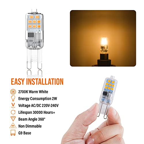 Lampadina LED G9 2W di ricambio per lampadina alogena G9 25W 20W, G9 LED bianco caldo 2700K, AC 230V Lampadina LED G9, CRI 85+, senza sfarfallio, angolo di 360 gradi, non dimmerabile, confezione da 8