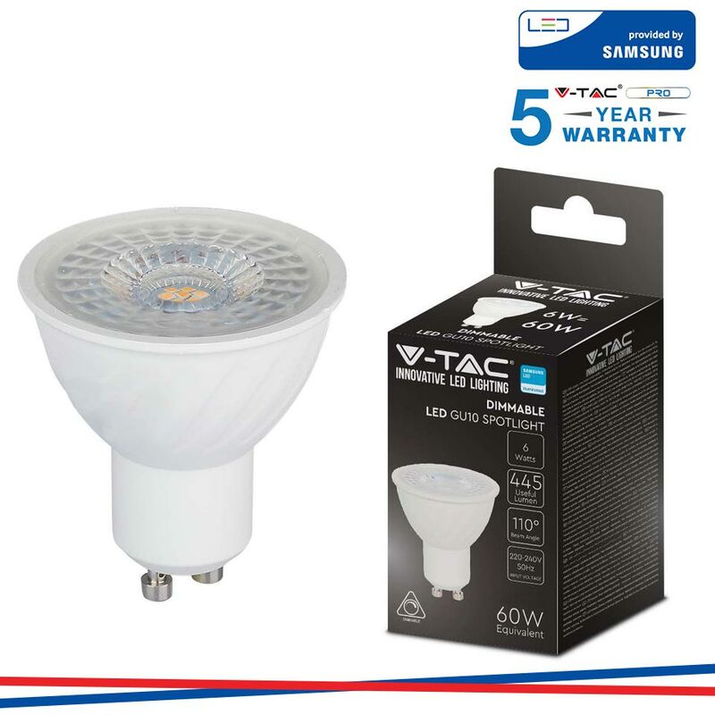 LED Lampadina SAMSUNG Chip GU10 6W Ripple Plastica Lens Cover 110° Dimmable 6400K SKU: 21200: VT: VT-247D Caratteristiche del prodotto 80% di consumo energetico in meno rispetto alle lampadine standard Lunga durata Nessuna emissione di radiazioni UV e radiazioni non ionizzanti Accensione immediata, nessun tempo di riscaldamento Bassa potenza termica Direttamente sostituibile alle lampade ad incandescenza tradizionali Installazione Aree Commerciali e Residenziali Hotel, Bar Stand espositivi Lampadari Allaperto, esclusivamente allinterno di apparecchi idonei. Specifiche tecniche Informazione generale Attacco GU10 Tipo Lampadina PAR16 Tipo LED SMD Samsung Chip Vitamedia 20,000 ore Dati elettrici Potenza 6W Potenza EQV. a incandescenza 60W Tensione AC:220-240V Frequenza 50Hz Dati tecnici luce Fascio Luminoso 110° Colore della luce Bianco Temperatura di colore 6500K Flusso luminoso (lm) 445 lm Indice di resa cromatica Ra >80 Dettagli corpo Materiale Plastica Funzionalità IP Protezione