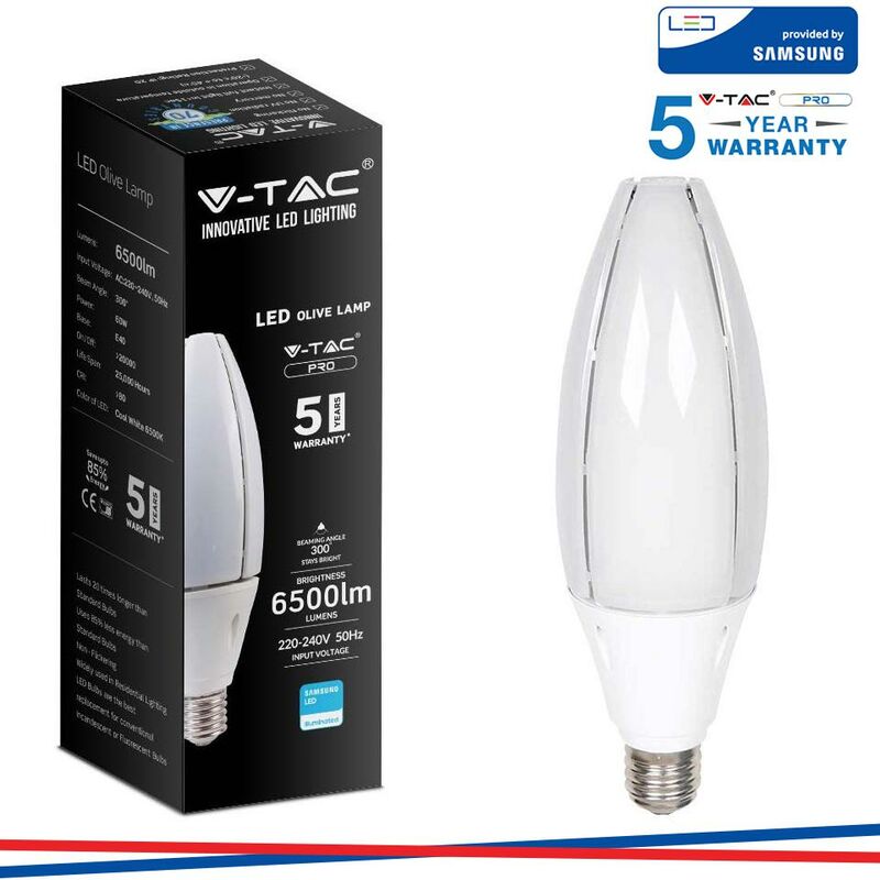 LED Lampadina SAMSUNG Chip 60W E40 Olive Lamp 4000K SKU: 21187: VT: VT-260 Caratteristiche del prodotto 80% di consumo energetico in meno rispetto alle lampadine standard Lunga durata Nessuna emissione di radiazioni UV e radiazioni non ionizzanti Accensione immediata, nessun tempo di riscaldamento Bassa potenza termica Direttamente sostituibile alle lampade ad incandescenza tradizionali Installazione Aree Commerciali e Residenziali Hotel, Bar Stand espositivi Lampadari Allaperto, esclusivamente allinterno di apparecchi idonei. Specifiche tecniche Informazione generale Attacco E40 Tipo Lampadina Olive Tipo LED SAMSUNG SMD Chip Vitamedia 20,000 ore Dati elettrici Potenza 60W Tensione AC:220-240V Frequenza 50Hz Dati tecnici luce Fascio Luminoso° 300° Colore della luce Bianco naturale Temperatura di colore 4000K Flusso luminoso (lm) 6500 lm Indice di resa cromatica Ra >80 Dettagli corpo Materiale Аlluminio Funzionalità IP Protezione IP20 Tempo innesco 100% 0.001 secondo Stabilità del