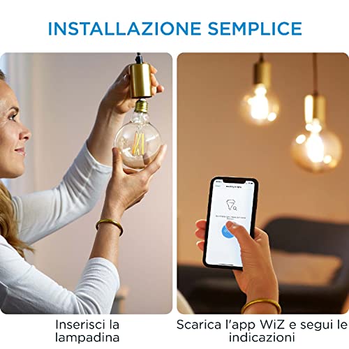 WiZ Lampadina Smart, Luce Bianca Dimmerabile, Filament, Attacco E27, 7W, Wi-Fi, Bluetooth, Tecnologia SpaceSense, Controllo Vocale (Alexa, Apple HomeKit, Google Home)
