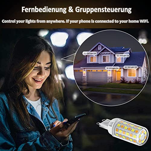 Lampadina G9 Smart WiFi Lampadine LED Alexa 3W 320lm Lampadina dimmerabile da 2700K a 6500K Compatibile con Alexa e Google Home, Controllo vocale, Nessun hub richiesto, WiFi Smart G9, 2er Pack