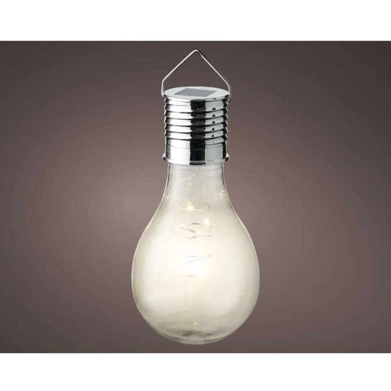 Lampadina solare in plastica trasparente con base silver da 8 cm, altezza 14 cm. Luce bianca calda, forma classica. Con interruttore e gancetto.. Acquistalo subito da CFadda e ricevilo comodamente a casa.
