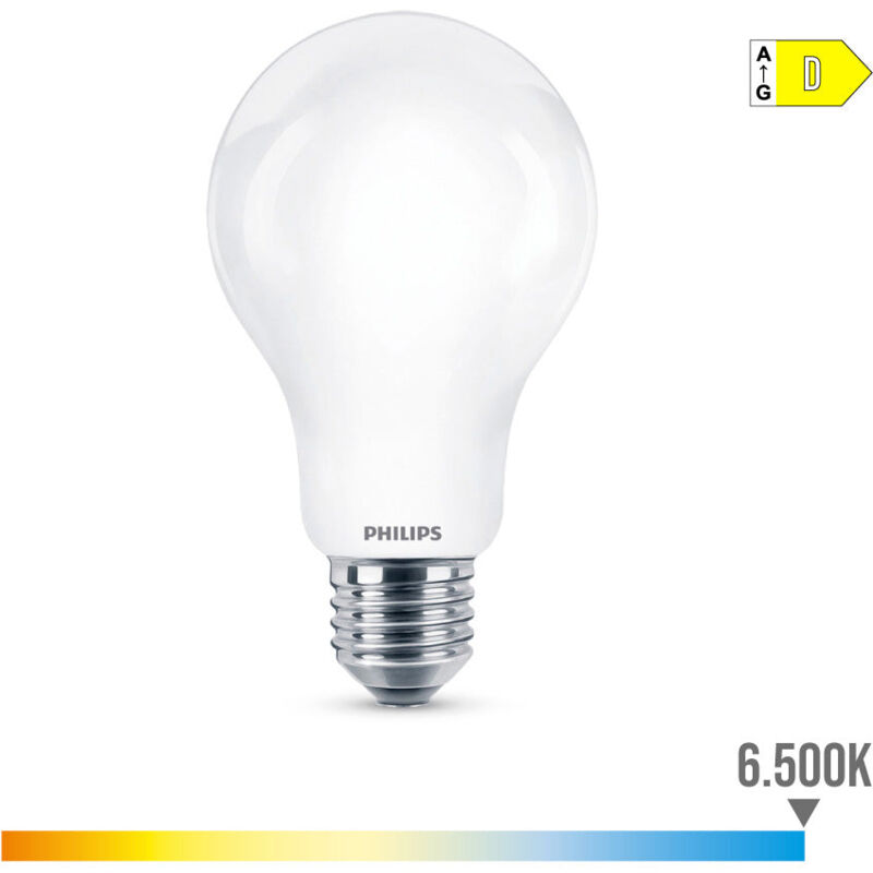 LAMPADINA LED STANDARD E27 13W 2000lm 6500K LUCE FREDDA. MISURE: Ø7x12.1cm (diametro/altezza) 15000h. AC 220-240V, vetro opaco, non dimmerabile, CRI: 80, angolo di apertura 360°. Equivalenza: 120 W. PHILIPS