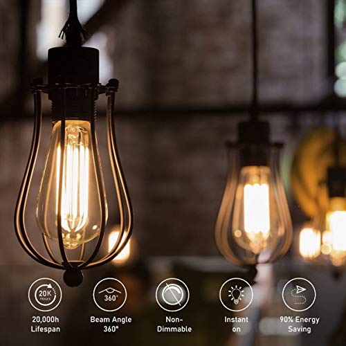 Risparmio Energetico ed Ecologico: LED lampadina vintage edison a filamento è da 4 watt, che equivale a una lampadina a incandescenza da 40 watt, risparmiando il 90% di energia e fornendo fino a 20.000 ore di durata