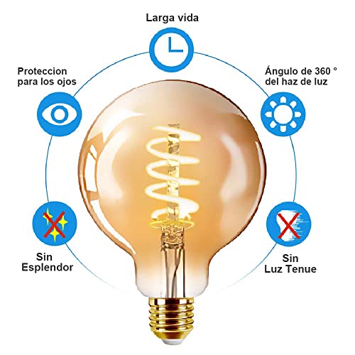 Risparmio energetico: riduci la bolletta dell'elettricità fino al 90% sostituendo la tua incandescenza da 40w con la lampadina Extrastar 4W, la sua sfera trasparente che mostra i filamenti a LED gli conferisce uno stile retrò vintage ideale per tutti i tipi di ambienti.