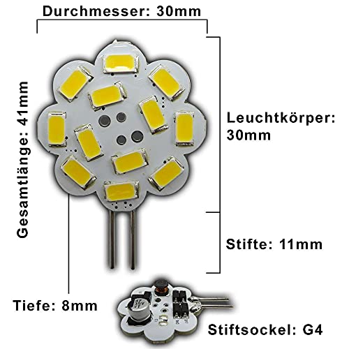 Lampadina G4 LED 3,1 Watt, verticale, 12 SMD, luce di colore bianco caldo, A++, dimmerabile, tensione 12 V ~ AC/DC, 120° ricambio per lampadina alogena, 3 pezzi