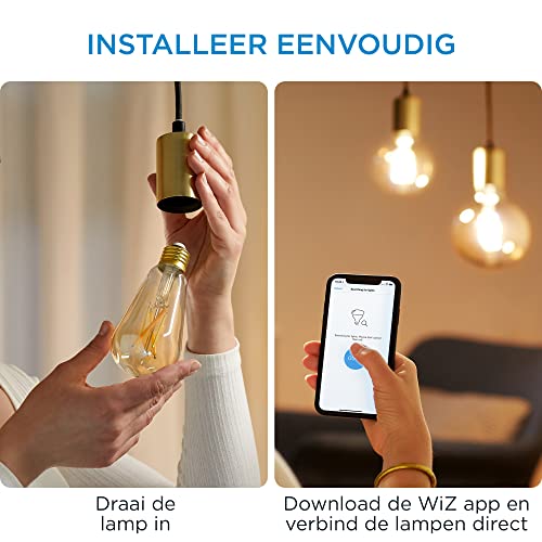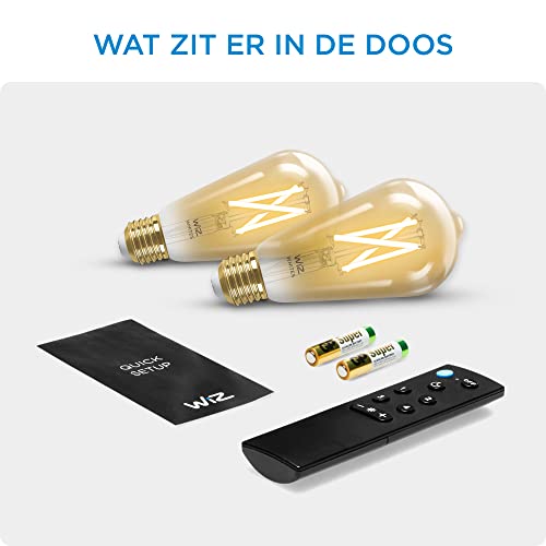 Wiz Lampadina WiFi LED Filamento Vintage regolabile bianco ST64 50W E27 confezione 2 + Wiz telecomando Luce bianca calda a fredda, 2700-6500K, 6,7 W (equivale a 50 W), A+