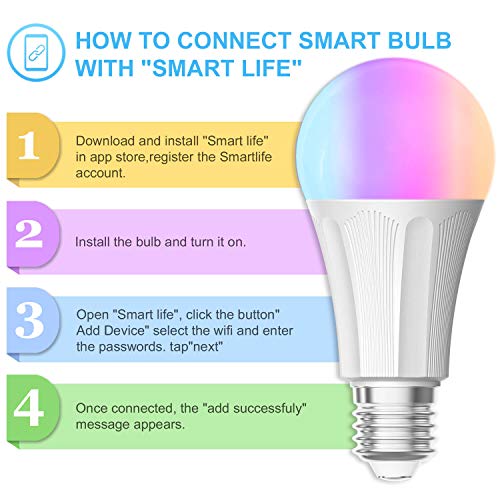 ▲Accesso Remoto - Controlla la lampadina Wifi da qualsiasi luogo con il tuo tablet o smartphone utilizzando l'app gratuita SMART LIFE. Tutte le lampadine intelligente sono controllate in un'unica app. Puoi creare un gruppo sull'app per controllare tutte le lampadine smart nello stesso tempo.
