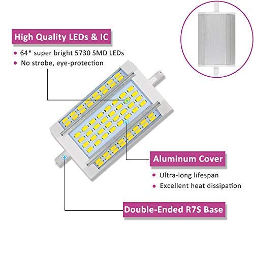 ★【Sicurezza e Eco-friendly】: R7S Dimmerabile LED 30W, con 64*5730 SMD LEDs, 3000LM, luce bianco fredda 6000K, angolo di diffusione della luce 200 gradi. Nessun piombo o mercurio. Nessun UV o IR. Sostituire la lampadina alogena nella plafoniera.