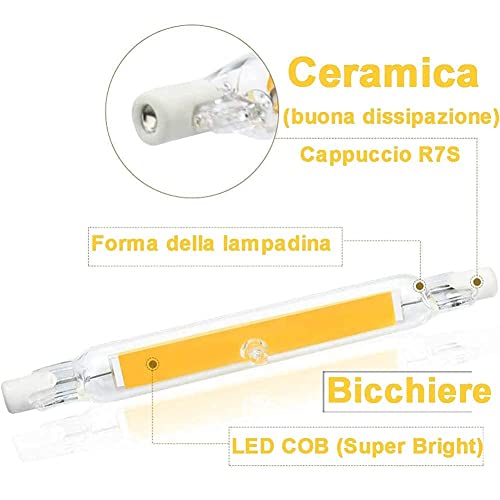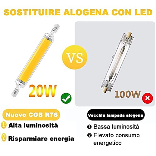2. Lampadina LED R7S 118mm 20W luce Calda 3000K, con 1*COB LED, 1600 lumen, La luce a 360 gradi garantisce l'illuminazione di ogni angolo. La copertura in vetro garantisce una buona trasmissione della luce