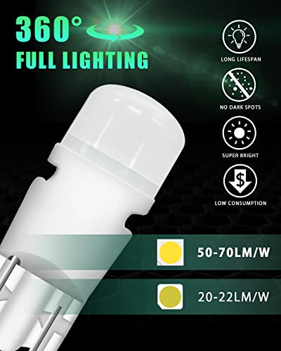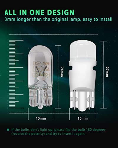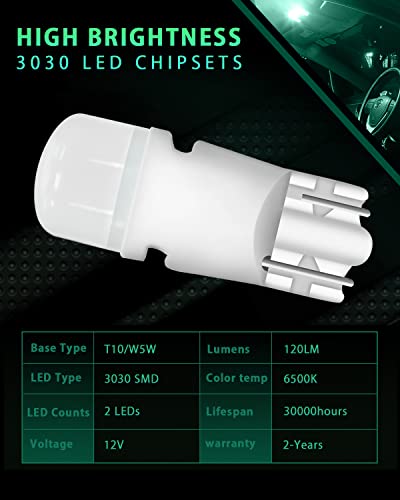 Cena luminosa: questa lampadina w5w è costruita con chipset SMD 3030 di alta qualità, offrendo un'illuminazione a 360 gradi, 200% più luminosa delle lampadine w5w di serie